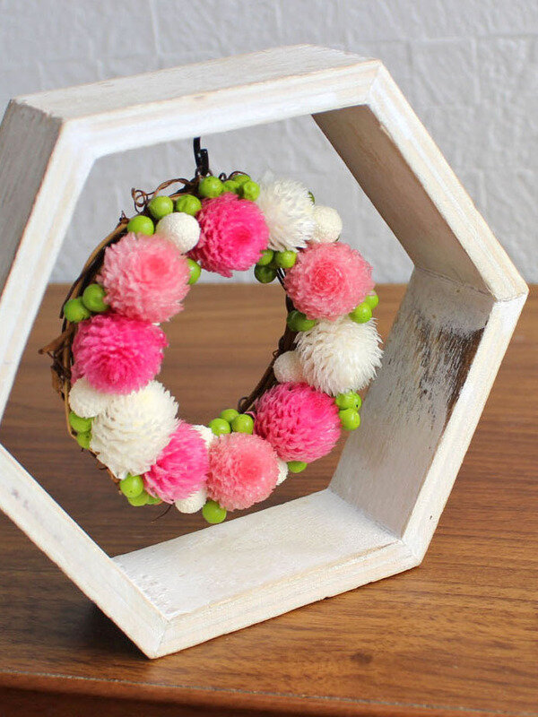 はなどんやキット「千日紅とベリーのゆらゆらリースキット」より。
