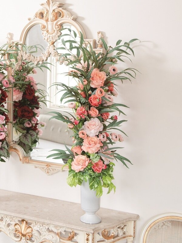 形の異なるローズを組み合わせた上品なタワーアレンジ。