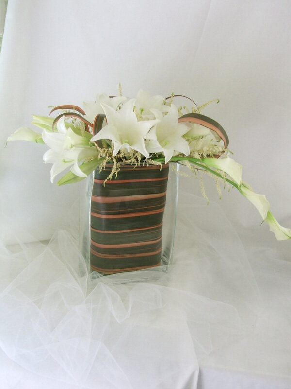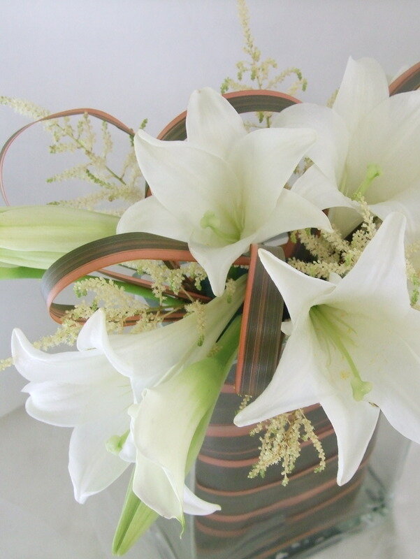 ユリと葉ものでアレンジ