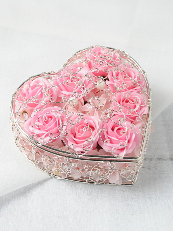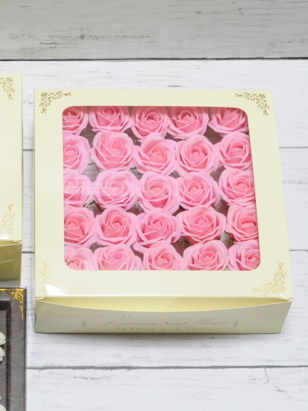 ソープフラワーのローズを使った、優しい石鹸の香りがほのかに香る、可愛いリングピローです。