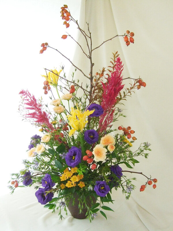 鈴バラを使った秋のアレンジ