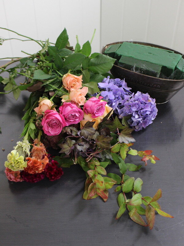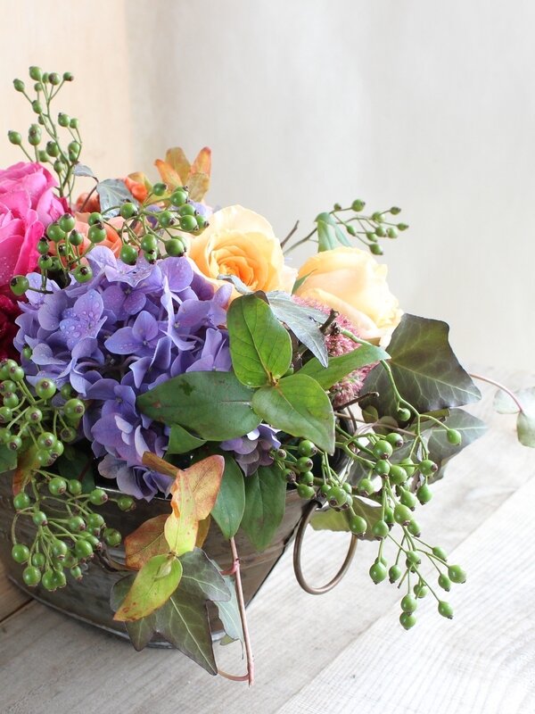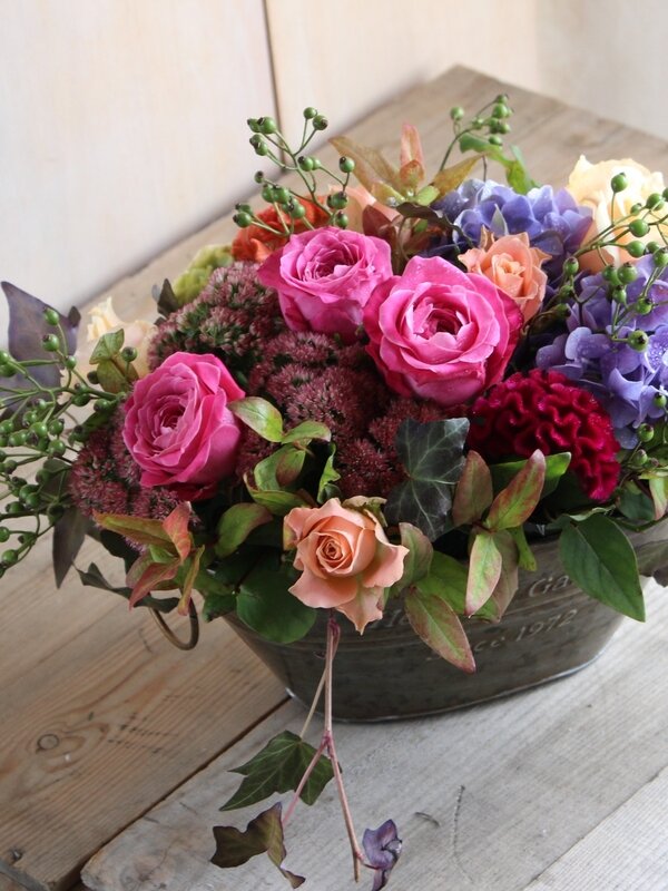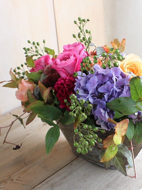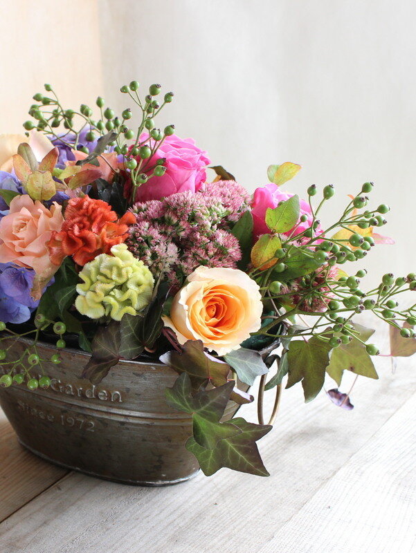 カラフルな秋色のアレンジ