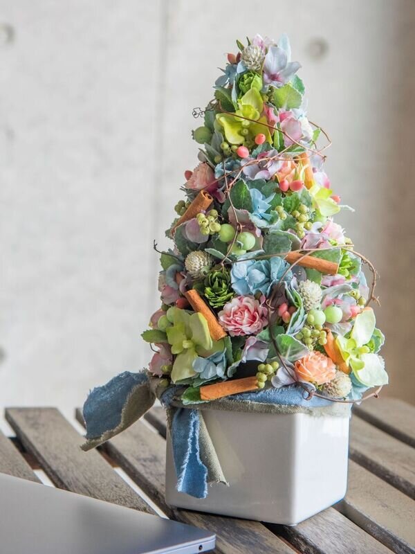 佐藤俊輔のFLOWER STYLE第8回、「今飾りたい、花いっぱいのデイリークリスマスツリー」より。