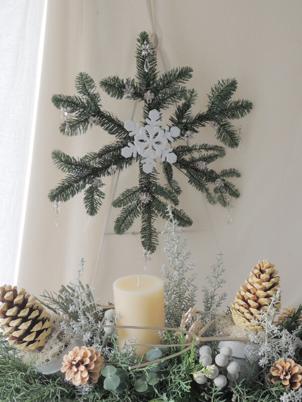 モミ枝でつくる雪の結晶