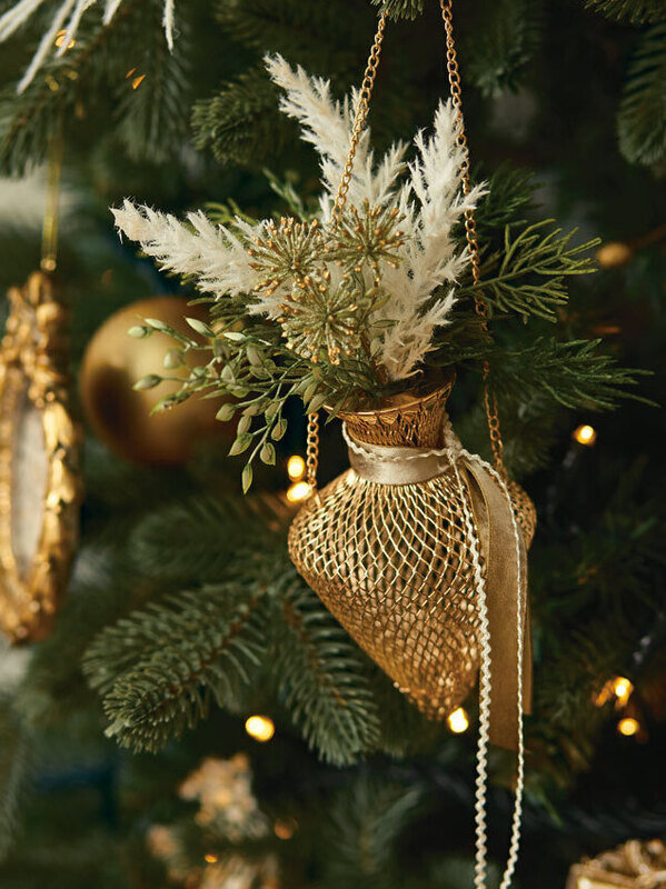ドロップ型オーナメントにパンパスを添えて。