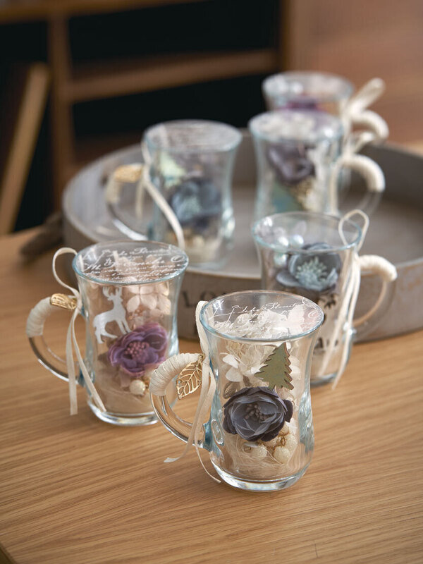フラワーとウッドパーツを詰め込んだティーグラス。