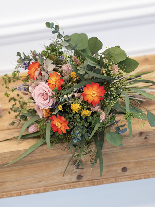 ジニア・小・グラデーションのオレンジが印象的なブーケです。