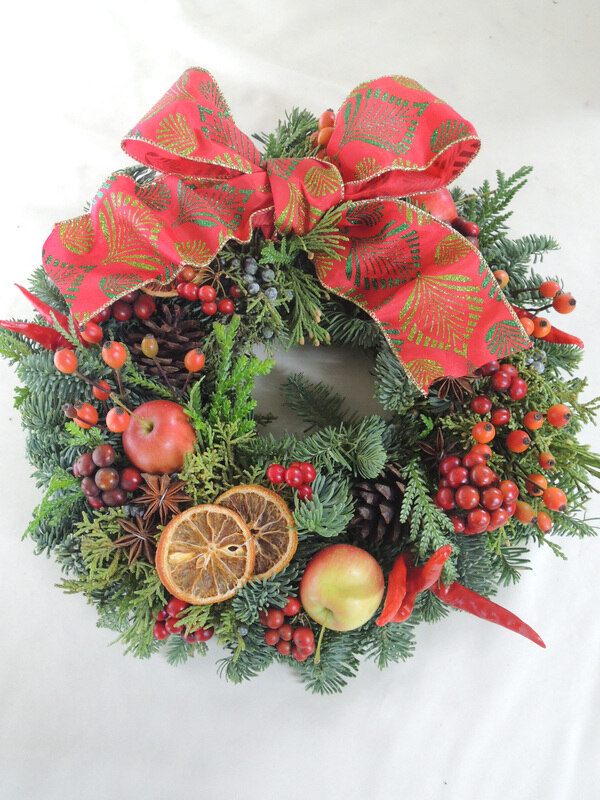 オレゴン産ミックスリースに飾りを足して・・・