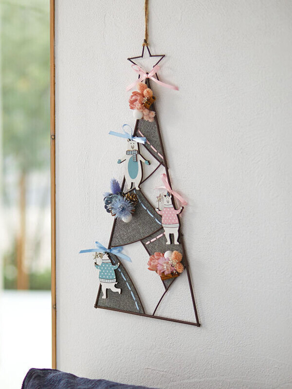 ベアの飾り付けが愛らしい壁掛けツリー。
