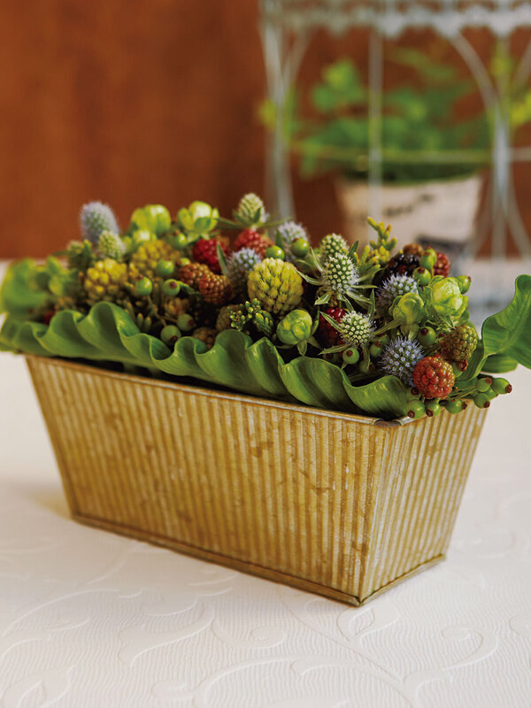 アンティーク加工・ストライプ風の模様が入った花器。◎使用商品071-00721 NatureDesigns/ストライプレクト・大[liner] セピア/45008
