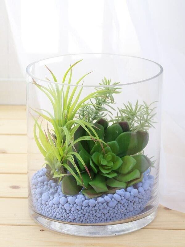 小さな花材とマッチするミニガラスを使用しました。圧迫感がないサイズ感なので、お部屋のちょっとしたところに飾るのに大活躍します♪