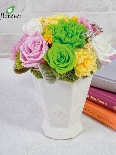 新鮮な生花の中から加工に適する花を厳選し、独自の技術で加工を施すことにより、生花により近い感触と透明感を実現し、花弁が肉厚でしなやかなのが特徴です。