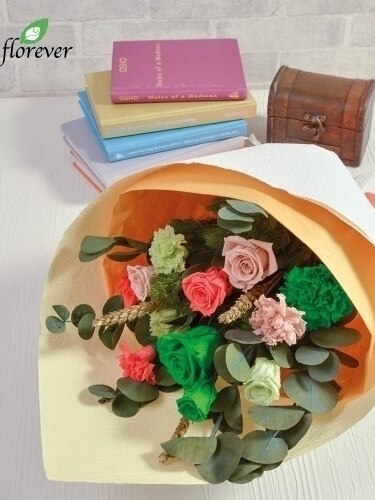 新鮮な生花の中から加工に適する花を厳選し、独自の技術で加工を施すことにより、生花により近い感触と透明感を実現し、花弁が肉厚でしなやかなのが特徴です。