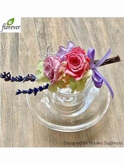 新鮮な生花の中から加工に適する花を厳選し、独自の技術で加工を施すことにより、生花により近い感触と透明感を実現し、花弁が肉厚でしなやかなのが特徴です。