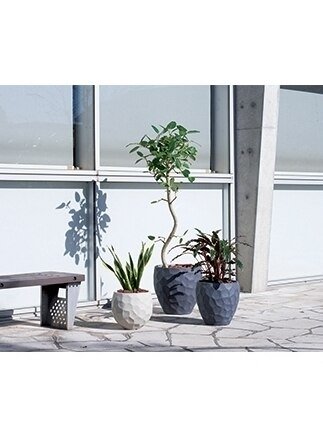 柄のついたモノトーンな花器を使用してスタイリッシュに