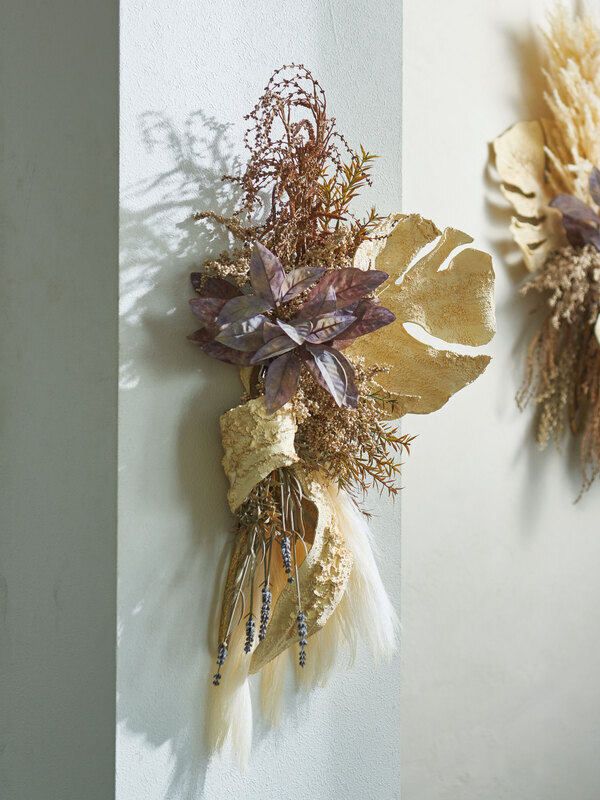 モンステラとファーンのシャビーな壁掛け。