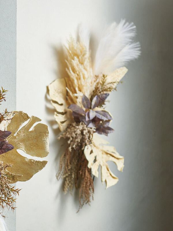 モンステラとファーンのシャビーな壁掛け。
