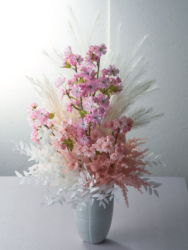 桜とホワイトファーンを組み合わせた春らしいアレンジ。