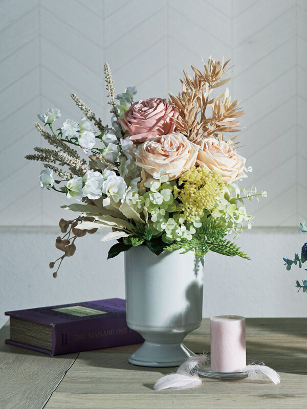 ローズとサイズ違いの花器で揃えたトリオアレンジ。