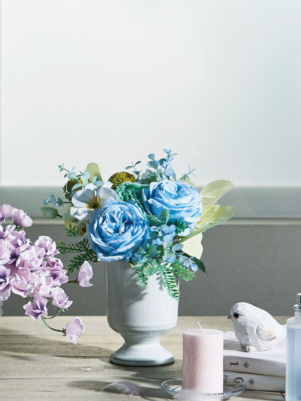 ローズとサイズ違いの花器で揃えたトリオアレンジ。