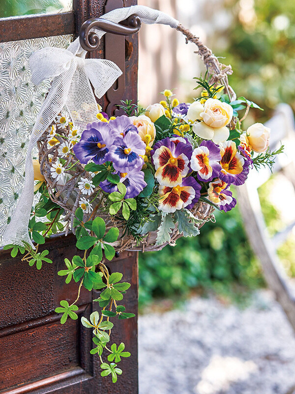 パンジーが主役のフラワーバスケット。