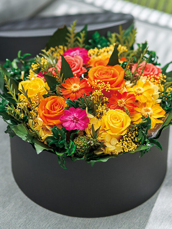 ビタミンカラーが鮮やかなフラワーボックス。