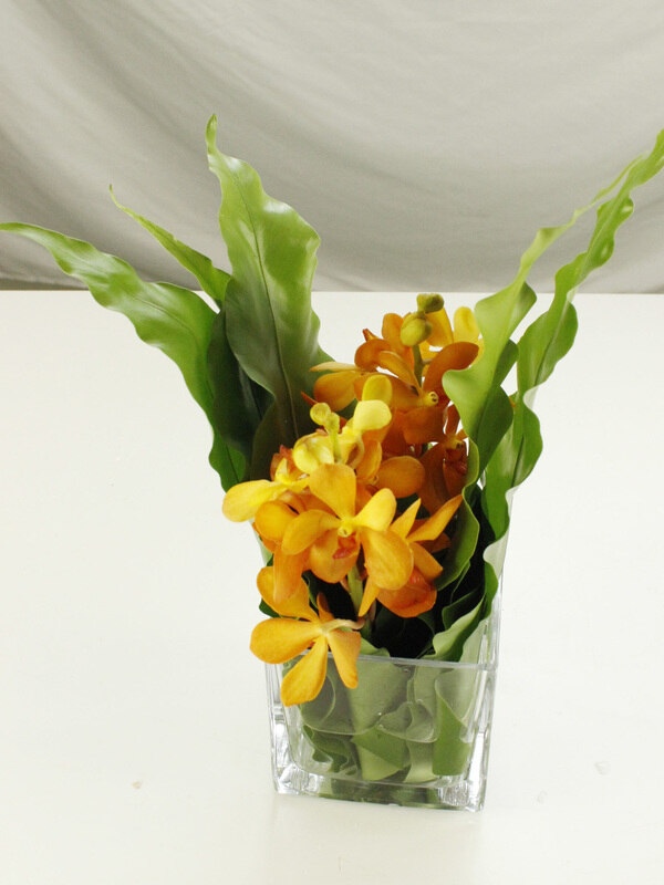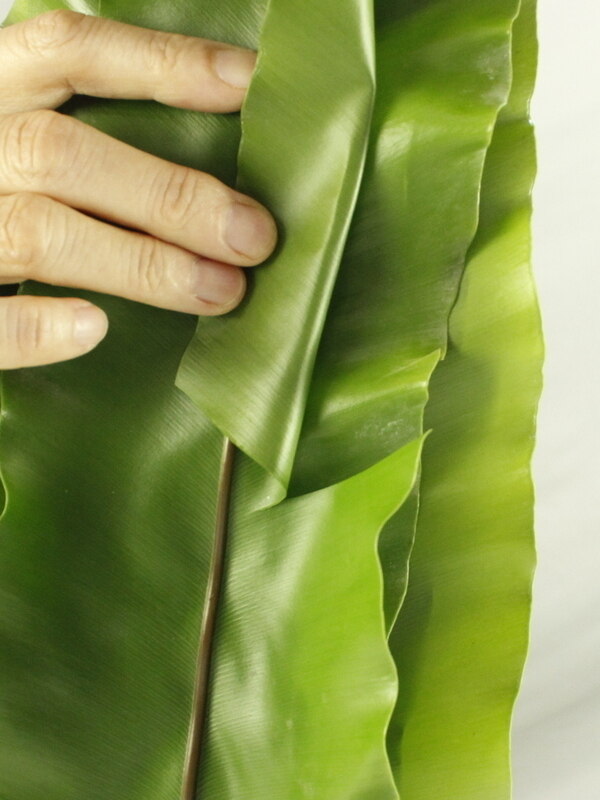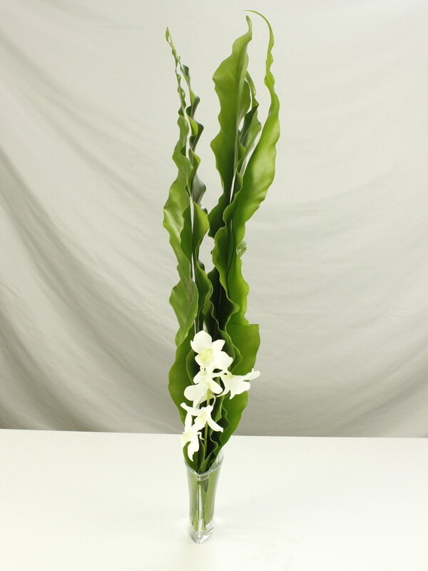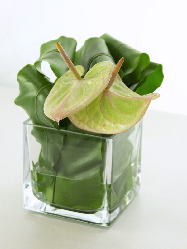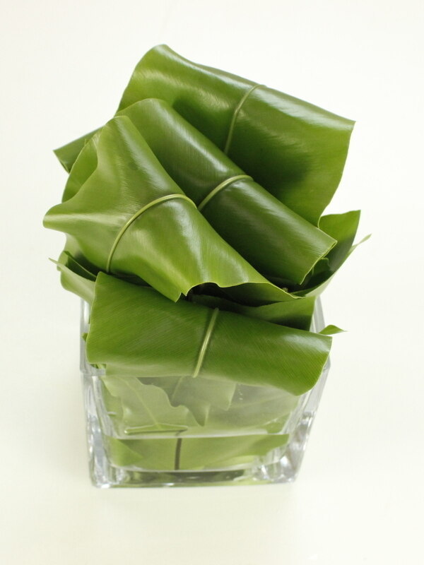 近藤しょうこ先生のうきうき花レシピデザインガラスの器にタニワタリを詰めて花止めに。たたんで器に詰めたり、重ねて隙間から花を出したり。