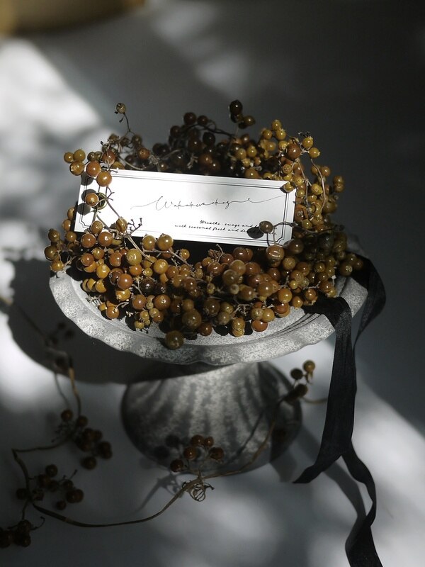 リースやブーケの中にストーリー性があり、草花が風にゆれる自然の景色をそのまま切り取ったかのような作品づくりをしています。