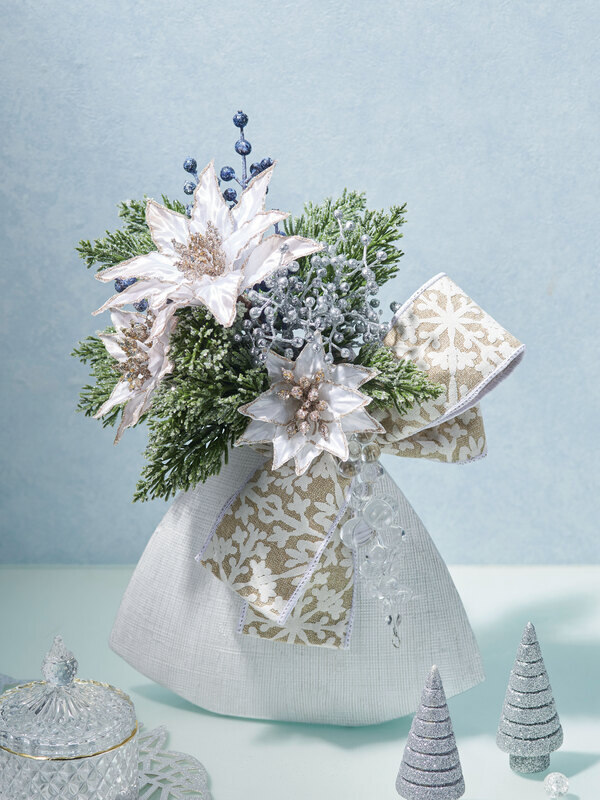 冬の冷たい空気を感じられるサテン風ポインセチアのアレンジ。