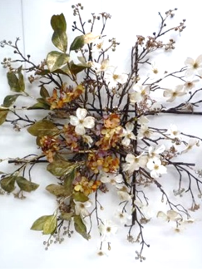ハナミズキやブランチの枝ぶりをそのまま活かして壁掛けに。