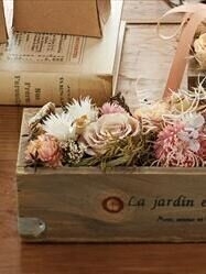 【大地農園作品例】新商品のローズ・かのん・M・ナチュレを使ったアレンジです。ナチュラルなカラーのローズで、ドライ素材との相性もぴったり。ボックスに入っているので贈り物にも!