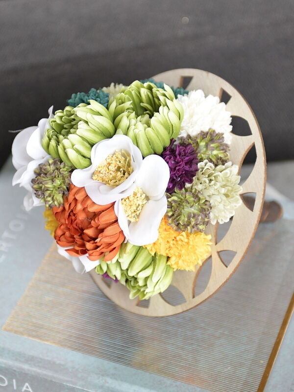 マム&椿のウッドプレートアレンジ