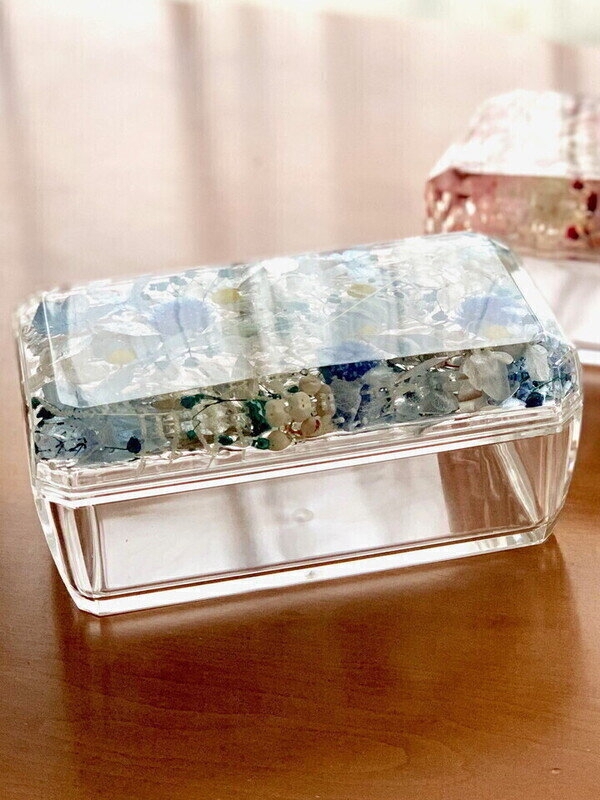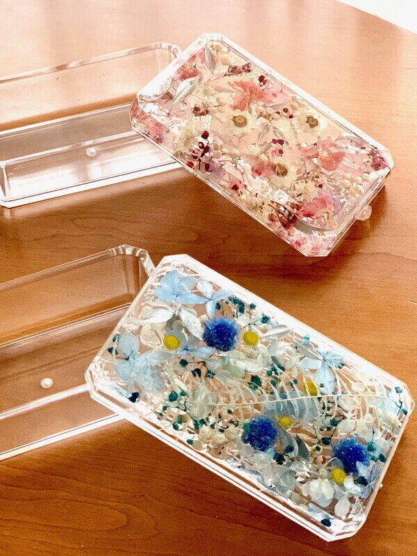 まさにお花の宝石箱?!蓋の部分にオリジナルのハーバリウムを作ることができ、蓋に光が通過することで小物入れの中身までお花の陰影がキラキラと浮かびあがる、夢のように可愛らしい小物入れです。【詳しい作り方】ご購入前に必読下さい。アクリルデザインケースの作り方。【ハーバリウムオイルで作る場合】ご紹介の花材のほかに、資材セットとハーバリウムオイルが必要になります。●商品番号: 163-00006 即日★アクリルデザインケース用 資材セット(4点セット)●ハーバリウムオイル商品一覧
