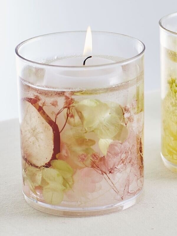 キャンドル材料がまとめて揃う「手作りキット」を使用したボタニカルジェルキャンドル。まずは試しに作ってみたいという方へとってもお勧めです。商品ページ内に作り方動画がございます。https://www.hanadonya.com/product/089-03000.html
