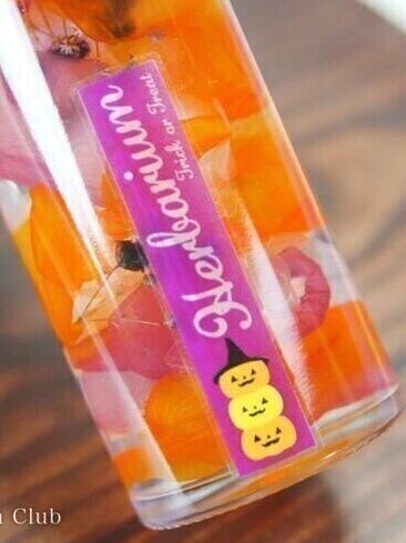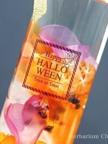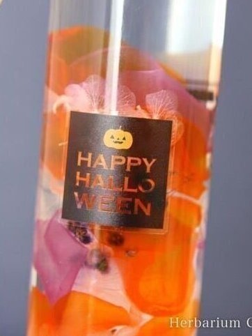 ハーバリウムシールを使用した、とっても簡単に作れるハロウィン風ハーバリウムです。