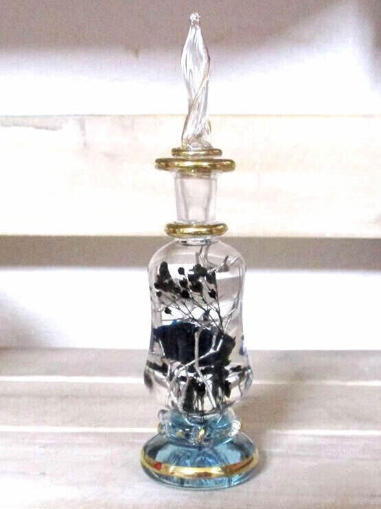 香水瓶のようなフォルムが美しい、ハーバリウム用のエジプシャングラスを使用した作品例です。オンリーワンのギフトに、また、ひときわクラス感のあるインテリアに。形のバリエーションも揃っていますので、グラスの形や中に入れるお花を色々変えて、沢山飾っても素敵です♪。(使用されている花材「ヴェスぺネスト・プラチナラメ」が廃盤の為、以下では同花材の白色をご紹介しています)