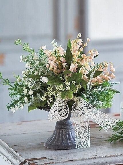 ピンクすずらんとかすみ草を使ったナチュラルなスタンドブーケ。