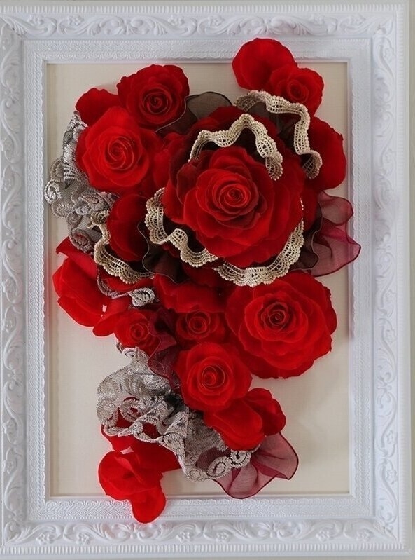レッド系のプリザーブドローズを使ったアレンジメントです。