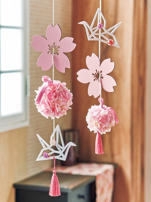 桜と折り鶴のモチーフで和風のハンギングボールに!。?はなどんやキット/桜のハンギングボールキット。?作り方動画(Youtube)
