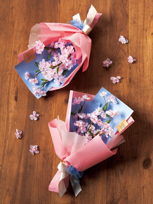 ラッピングペーパーが印象的な桜の花束。