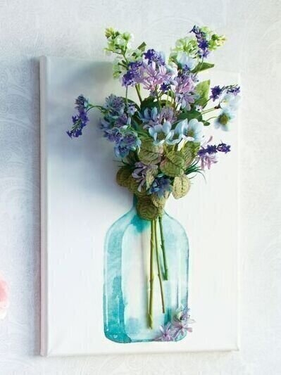キャンパスに造花を組み合わせ立体的なアレンジに。※キャンバスは参考商品です。