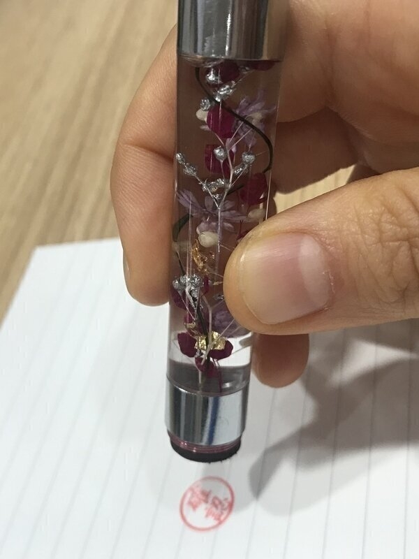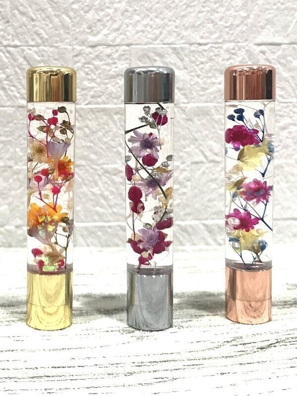 ハーバリウムがなんと高級感ある印鑑に!当店では、印面をお好きな文字でオーダーメイド受付しています♪お仕事から普段使いまで、癒しのハーバリウムをぜひお手元でお楽しみくださいませ。