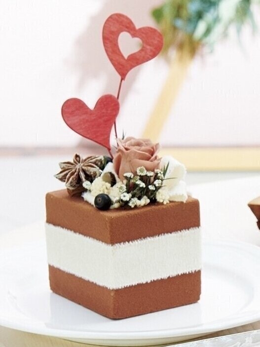 ハートのピックで愛情たっぷり♪かわいいチョコレートケーキにテンションアップ♪