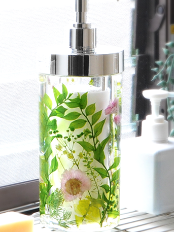 お花を入れて蓋を締めるだけで簡単に作れる「ハーバリウムディスペンサー容器」を使用したアレンジメントです。