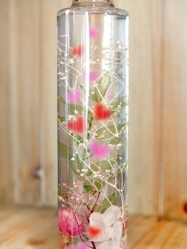 バレンタインにぴったり!オイルの中でふんわりハートが浮かぶハーバリウム。専用シールを使って簡単に作れます。【詳しい作り方】はなどんやマガジン:ハーバリウム用デザインシール「ハーバリウムクラブ」使い方のご紹介♪。