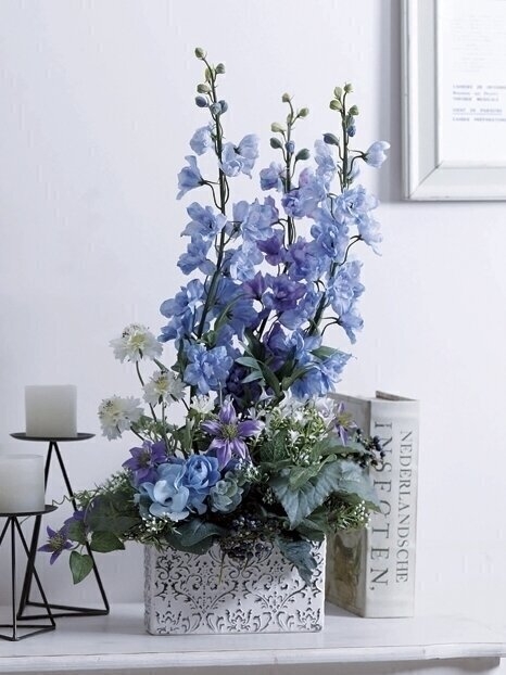ブル~パープルのデルフィニウムを楽しむアレンジ。※使用したベースはこちら
