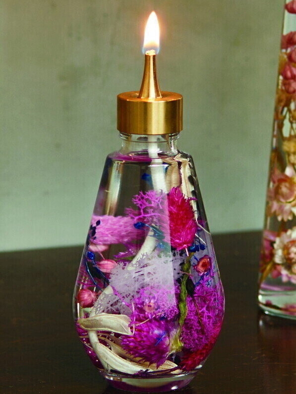 リキッドキャンドルの中にお花をレイアウトすると、素敵な「ハーバリウムランプ」が楽しめます♪