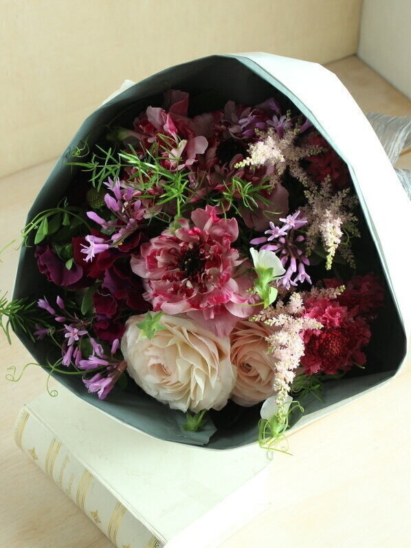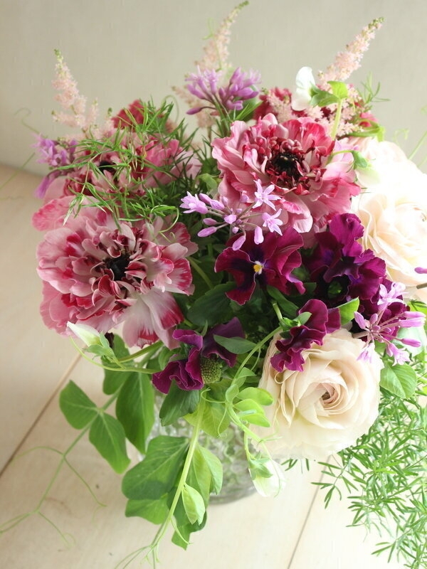 作り方はこちら。アネモネ咲きのラナンキュラス「シャルロット」の花束