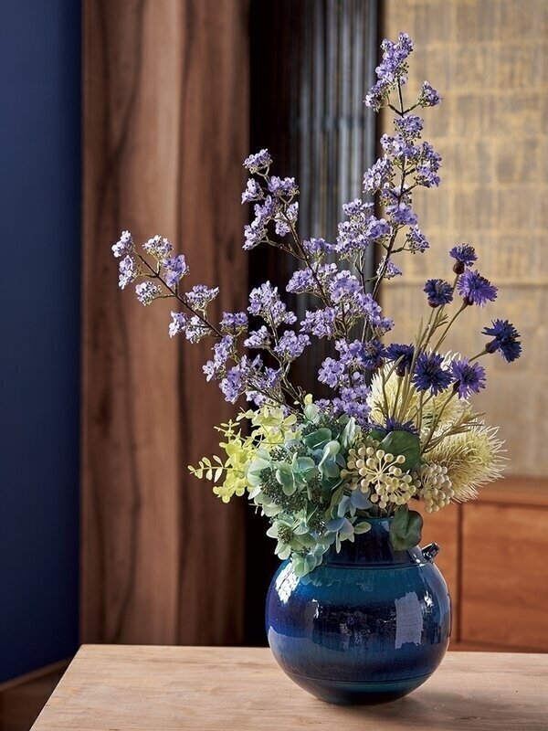 矢車草とバンクシアを使ったモダンなアレンジ。