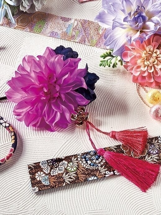 カラフルなダリアで楽しむ髪飾り。